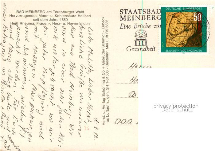 73724796 alte Postkarte Bad Meinberg Fliegeraufnahme postalisch gelaufen Erhaltung siehe scans [WerneD78] KatCode: 11110005766032
