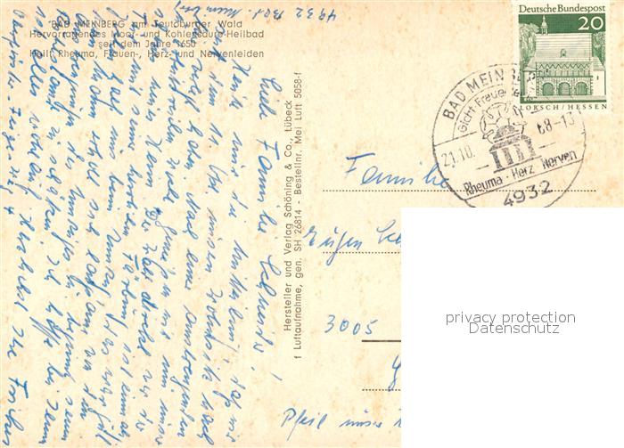 72942619 alte Postkarte Bad Meinberg Fliegeraufnahme Heilbad postalisch gelaufen Erhaltung siehe scans [LiesaD40] KatCode: 11110005766032