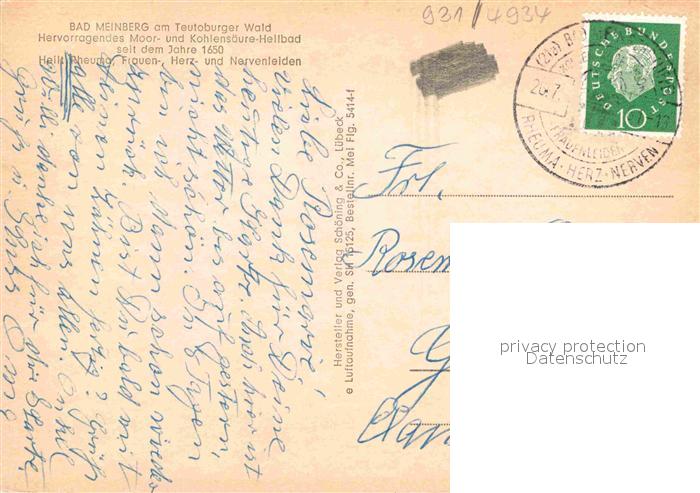 72907044 alte Postkarte Bad Meinberg Heilbad am Teutoburger Wald Fliegeraufnahme postalisch gelaufen Erhaltung siehe scans [FriedD77] KatCode: 11110005766032