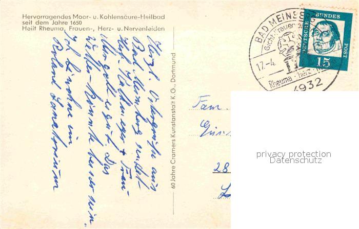 72812531 alte Postkarte Bad Meinberg Heilbad Karikaturen Spruch postalisch gelaufen Erhaltung siehe scans [FriedD77] KatCode: 11110005766032