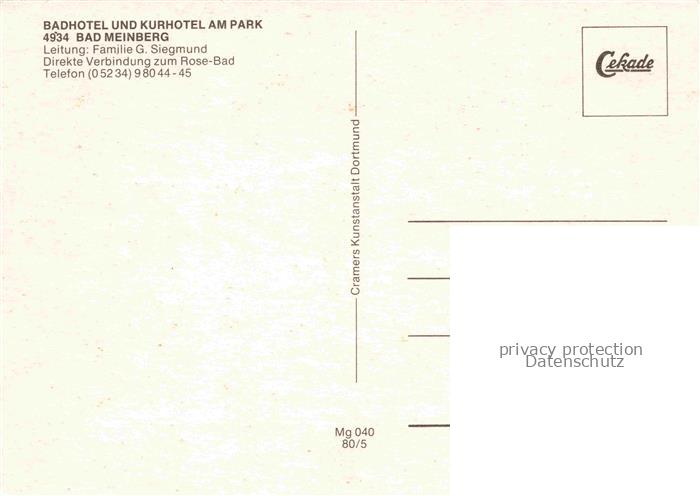 74042601 Bad Meinberg Horn-Bad Meinberg NRW Badhotel und Kurhotel am Park Gastraum Fremdenzimmer Garten postalisch nicht gelaufen Erhaltung siehe scans [FriedD77] KatCode: 11110005766032