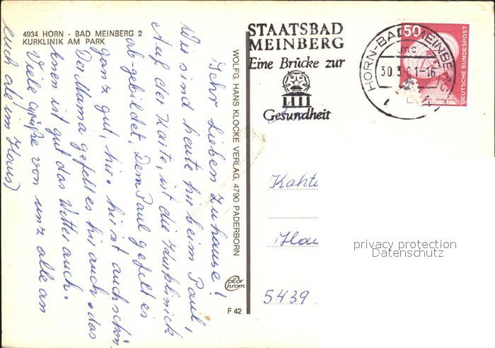 72574003 alte Postkarte Bad Meinberg Kurklinik am Park postalisch gelaufen Erhaltung siehe scans [LiesaD40] KatCode: 11110005766032