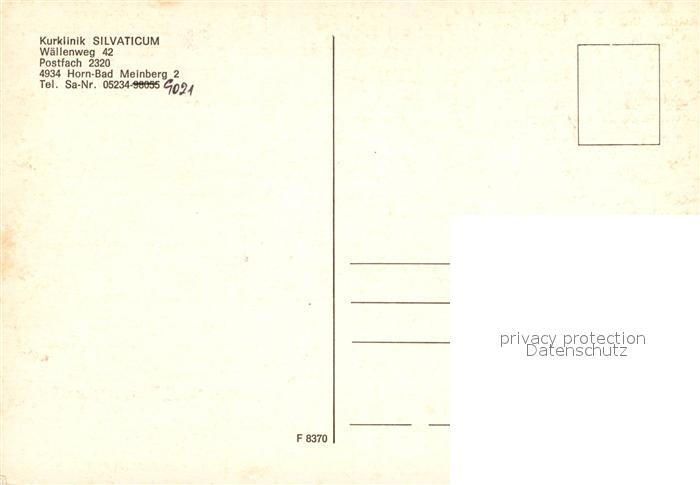 72967782 Bad Meinberg Kurklinik Silvaticum postalisch nicht gelaufen Erhaltung siehe scans [LiesaD40] KatCode: 11110005766032
