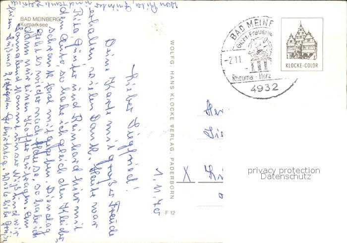 72404518 alte Postkarte Bad Meinberg Kurparksee postalisch gelaufen Erhaltung siehe scans KatCode: 11110005766032