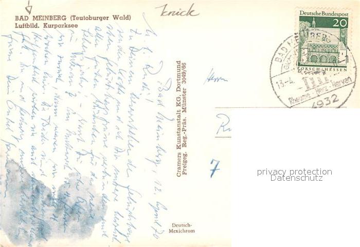 73080519 alte Postkarte Bad Meinberg Kurparksee Kurort Teutoburger Wald Fliegeraufnahme postalisch gelaufen Erhaltung siehe scans [FriedD77] KatCode: 11110005766032