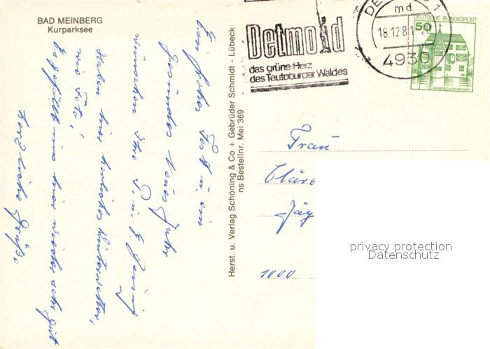 73019398 alte Postkarte Bad Meinberg Kurparksee postalisch gelaufen Erhaltung siehe scans [NatalD47] KatCode: 11110005766032