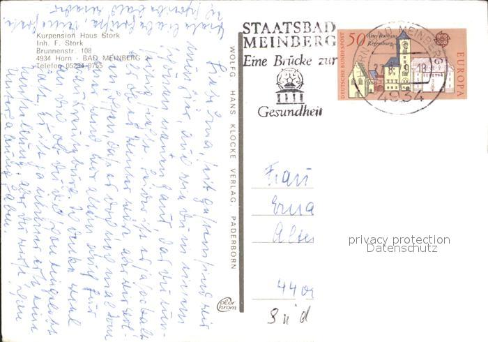 72375778 alte Postkarte Bad Meinberg Kurpension Haus Stork Gast und Aufenthaltsraum Fliegeraufnahme postalisch gelaufen Erhaltung siehe scans KatCode: 11110005766032