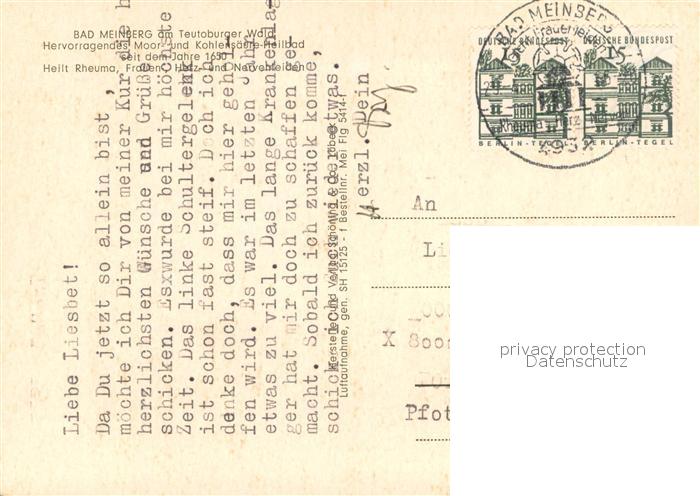 73747550 alte Postkarte Bad Meinberg Moor und Kohlensaeure Heilbad Fliegeraufnahme postalisch gelaufen Erhaltung siehe scans [WerneD78] KatCode: 11110005766032