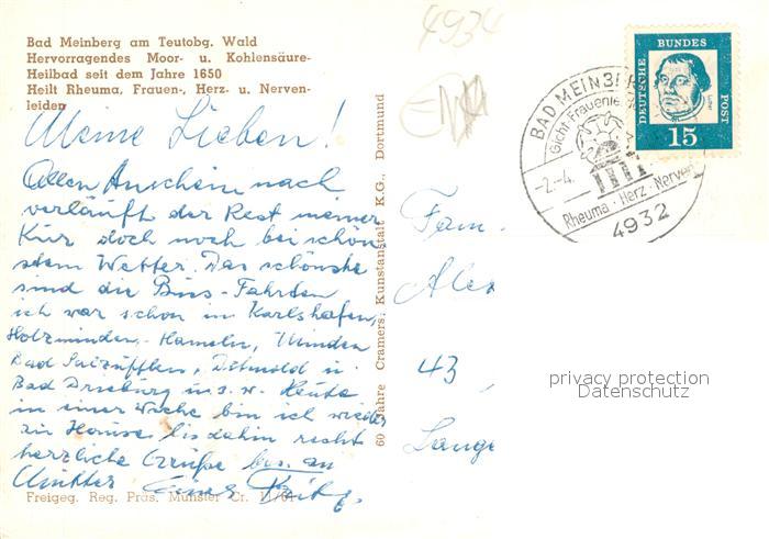 73656481 alte Postkarte Bad Meinberg Moor und Kohlesaeure Heilbad Fliegeraufnahme postalisch gelaufen Erhaltung siehe scans [WerneD78] KatCode: 11110005766032