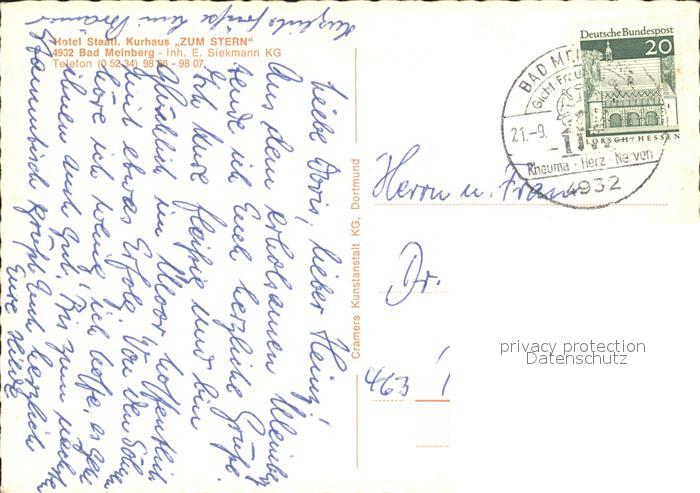 72048222 alte Postkarte Bad Meinberg Park Cafe Zum Stern Kurhaus postalisch gelaufen Erhaltung siehe scans KatCode: 11110005766032