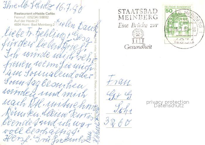 73094948 alte Postkarte Bad Meinberg Restaurant Heide Cafe postalisch gelaufen Erhaltung siehe scans [KathaD81] KatCode: 11110005766032