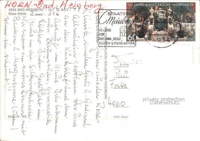 72922560 alte Postkarte Bad Meinberg Rose Klinik postalisch gelaufen Erhaltung siehe scans [NatalD47] KatCode: 11110005766032