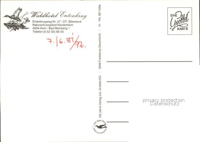 72520156 Bad Meinberg Waldhotel Entenkrug postalisch nicht gelaufen Erhaltung siehe scans KatCode: 11110005766032
