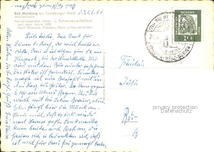 72027499 alte Postkarte Bad Meinberg Wandelhalle postalisch gelaufen Erhaltung siehe scans KatCode: 11110005766032