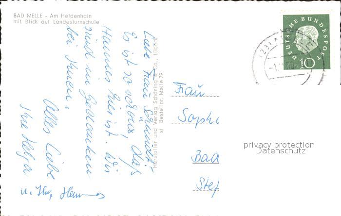 72253062 alte Postkarte Bad Melle Osnabrueck Am Heldenhain mit Landesturnschule postalisch gelaufen Erhaltung siehe scans KatCode: 11110003459024