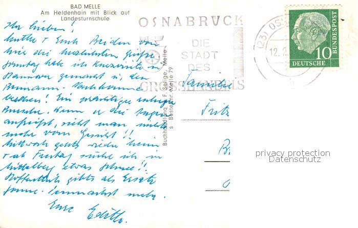 72795418 alte Postkarte Bad Melle Osnabrueck Am Heldenhain mit Landesturnschule postalisch gelaufen Erhaltung siehe scans [LiesaD40] KatCode: 11110003459024