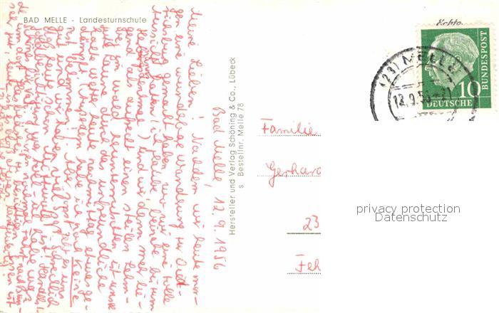 72791585 alte Postkarte Bad Melle Osnabrueck Landesturnschule postalisch gelaufen Erhaltung siehe scans [AndreD76] KatCode: 11110003459024