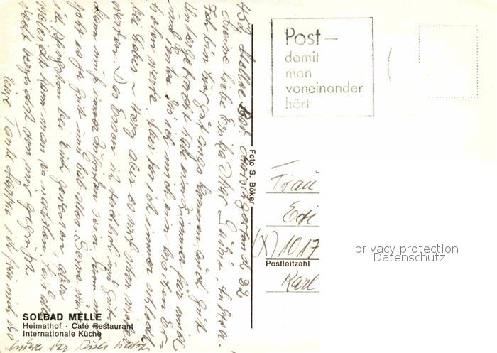 72840286 alte Postkarte Bad Melle Osnabrueck Solbad Cafe Restaurant Heimathof postalisch gelaufen Erhaltung siehe scans [WerneD78] KatCode: 11110003459024