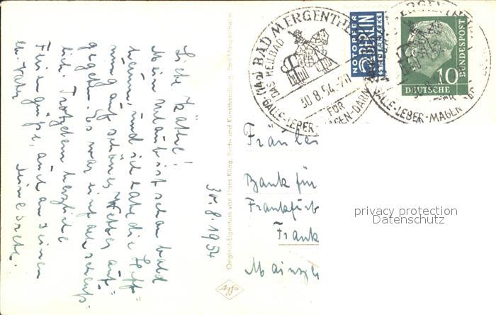72093345 alte Postkarte Bad Mergentheim postalisch gelaufen Erhaltung siehe scans KatCode: 11110008128007