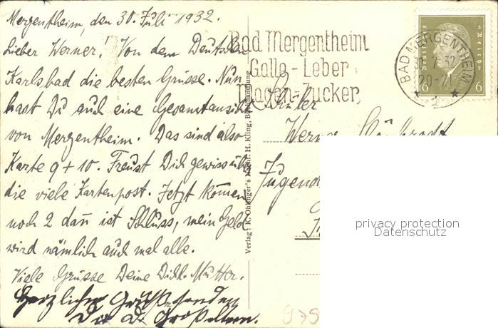 31729752 alte Postkarte Bad Mergentheim postalisch gelaufen Erhaltung siehe scans KatCode: 11110008128007