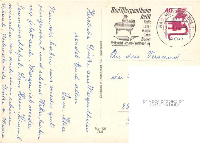 72938515 alte Postkarte Bad Mergentheim Brunnen postalisch gelaufen Erhaltung siehe scans [NatalD47] KatCode: 11110008128007