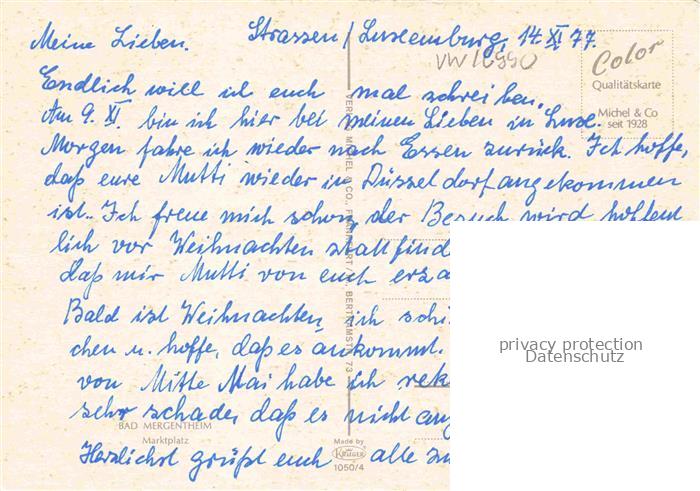 74104631 BAD MERGENTHEIM BW Marktplatz postalisch nicht gelaufen Erhaltung siehe scans [WerneD78] KatCode: 11110008128007
