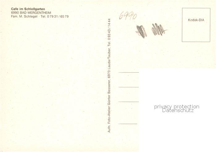 73856275 Bad Mergentheim Cafe im Schlossgarten Kamin postalisch nicht gelaufen Erhaltung siehe scans [FriedD77] KatCode: 11110008128007