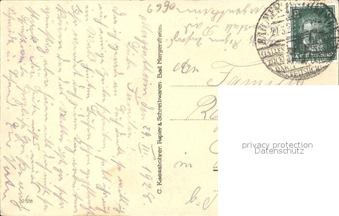 31884832 alte Postkarte Bad Mergentheim Cafe Roll Schloss postalisch gelaufen Erhaltung siehe scans KatCode: 11110008128007