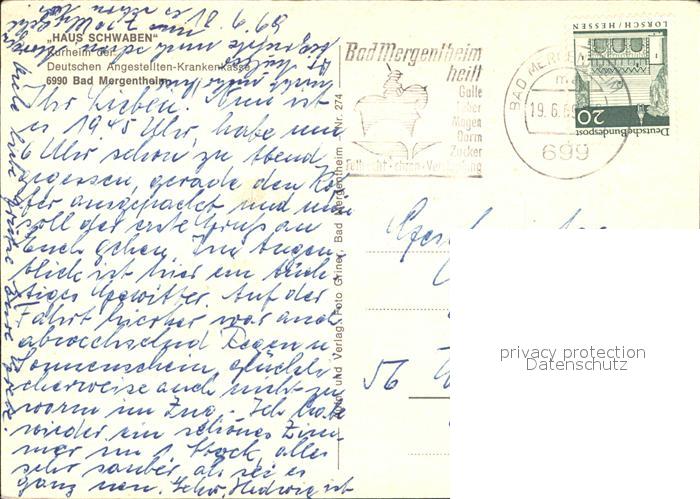 72582369 alte Postkarte Bad Mergentheim DAK Haus Schwaben Gastraum Park Schwimmbad Speisesaal postalisch gelaufen Erhaltung siehe scans [WerneD78] KatCode: 11110008128007