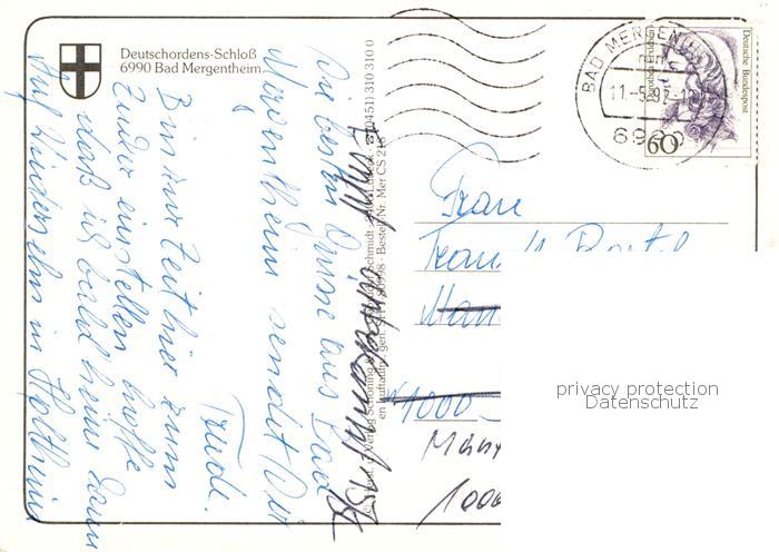 73838337 alte Postkarte Bad Mergentheim Deutschordens Schloss Fliegeraufnahme postalisch gelaufen Erhaltung siehe scans [WerneD78] KatCode: 11110008128007
