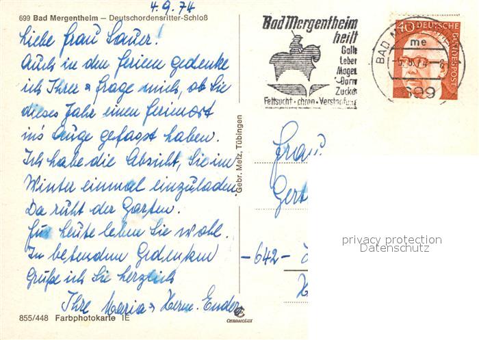 73040760 alte Postkarte Bad Mergentheim Deutschordensritter-Schloss postalisch gelaufen Erhaltung siehe scans [NatalD47] KatCode: 11110008128007