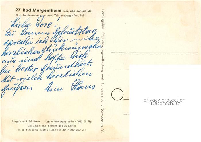 73071579 Bad Mergentheim Deutschordensschloss postalisch nicht gelaufen Erhaltung siehe scans [WerneD78] KatCode: 11110008128007