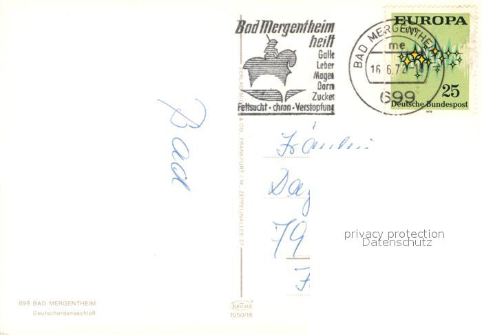72972621 alte Postkarte Bad Mergentheim Deutschordensschloss postalisch gelaufen Erhaltung siehe scans [FriedD77] KatCode: 11110008128007