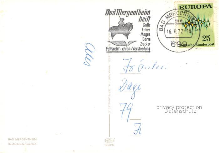 72972619 alte Postkarte Bad Mergentheim Deutschordensschloss postalisch gelaufen Erhaltung siehe scans [FriedD77] KatCode: 11110008128007