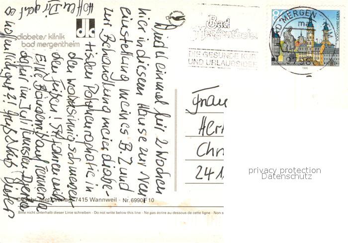 73644741 alte Postkarte Bad Mergentheim Diabetes Klinik Fliegeraufnahme postalisch gelaufen Erhaltung siehe scans [WerneD78] KatCode: 11110008128007