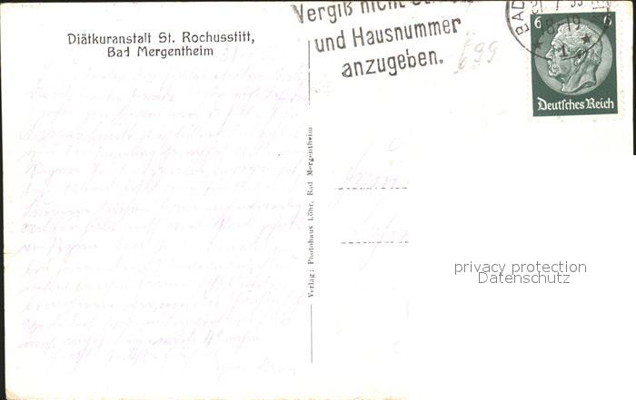 31731373 alte Postkarte Bad Mergentheim Diaetkuranstalt St. Rochusstift postalisch gelaufen Erhaltung siehe scans KatCode: 11110008128007