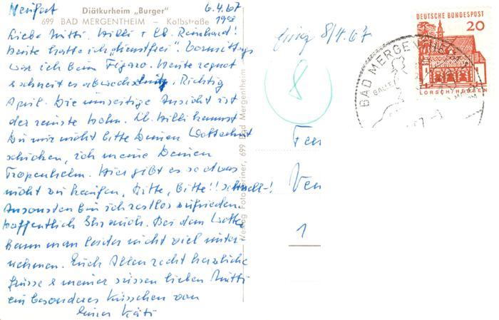 73900154 alte Postkarte Bad Mergentheim Diaetkurheim Burger Garten postalisch gelaufen Erhaltung siehe scans [FriedD77] KatCode: 11110008128007