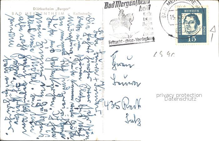 41584927 alte Postkarte Bad Mergentheim Diaetkurheim Burger Kolbstrasse postalisch gelaufen Erhaltung siehe scans KatCode: 11110008128007