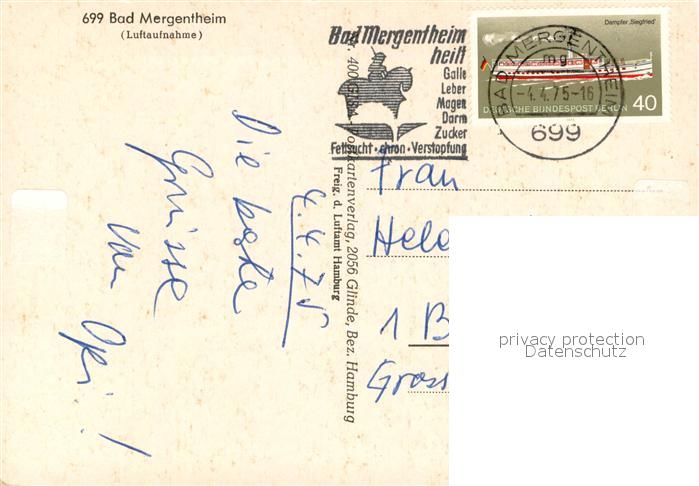 73668258 alte Postkarte Bad Mergentheim Fliegeraufnahme postalisch gelaufen Erhaltung siehe scans [WerneD78] KatCode: 11110008128007
