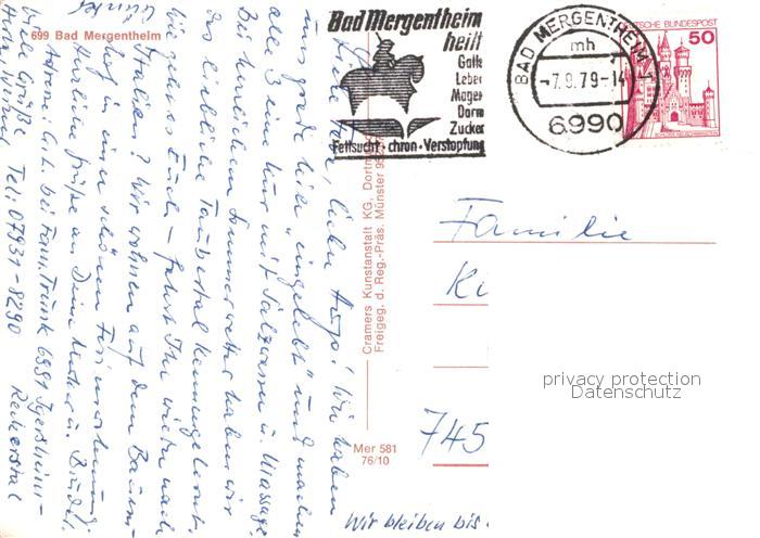 73169473 alte Postkarte Bad Mergentheim Fliegeraufnahme postalisch gelaufen Erhaltung siehe scans [FriedD77] KatCode: 11110008128007