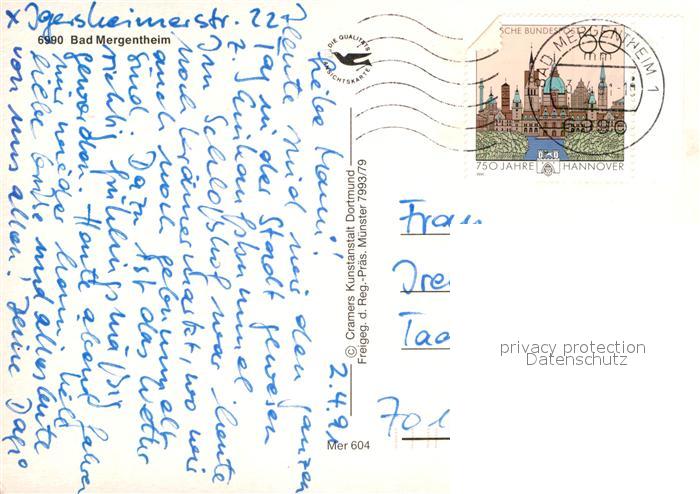 72976094 alte Postkarte Bad Mergentheim Fliegeraufnahme postalisch gelaufen Erhaltung siehe scans [LiesaD40] KatCode: 11110008128007