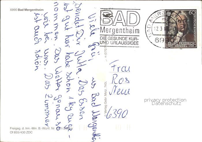 72452678 alte Postkarte Bad Mergentheim Fliegeraufnahme postalisch gelaufen Erhaltung siehe scans KatCode: 11110008128007