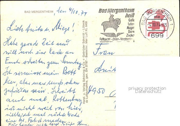 72371528 alte Postkarte Bad Mergentheim Fliegeraufnahme postalisch gelaufen Erhaltung siehe scans KatCode: 11110008128007