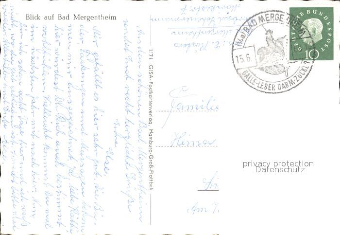 72174920 alte Postkarte Bad Mergentheim Fliegeraufnahme postalisch gelaufen Erhaltung siehe scans KatCode: 11110008128007