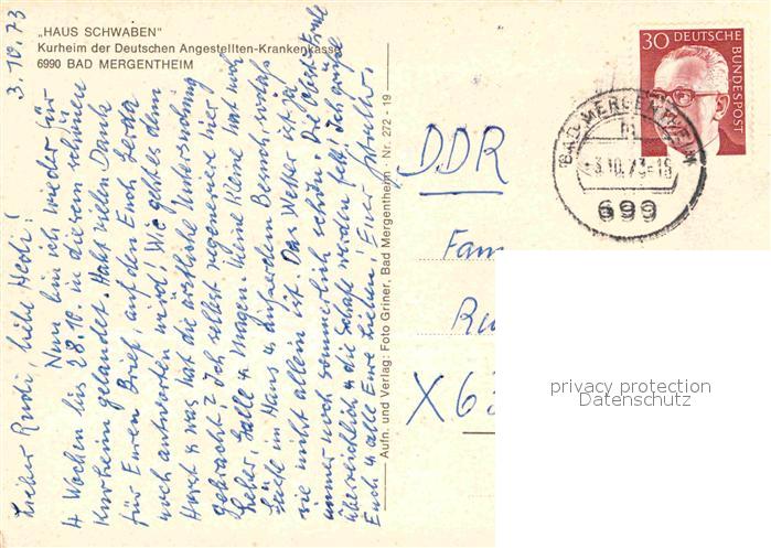 72628559 alte Postkarte Bad Mergentheim Fliegeraufnahme Haus Schwaben der DAK postalisch gelaufen Erhaltung siehe scans [WerneD78] KatCode: 11110008128007