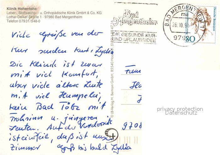 72825348 alte Postkarte Bad Mergentheim Fliegeraufnahme Klinik Hohenlohe postalisch gelaufen Erhaltung siehe scans [AndreD76] KatCode: 11110008128007