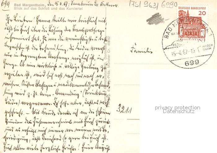 73281638 alte Postkarte Bad Mergentheim Fliegeraufnahme Schloss Kurviertel postalisch gelaufen Erhaltung siehe scans [NatalD47] KatCode: 11110008128007