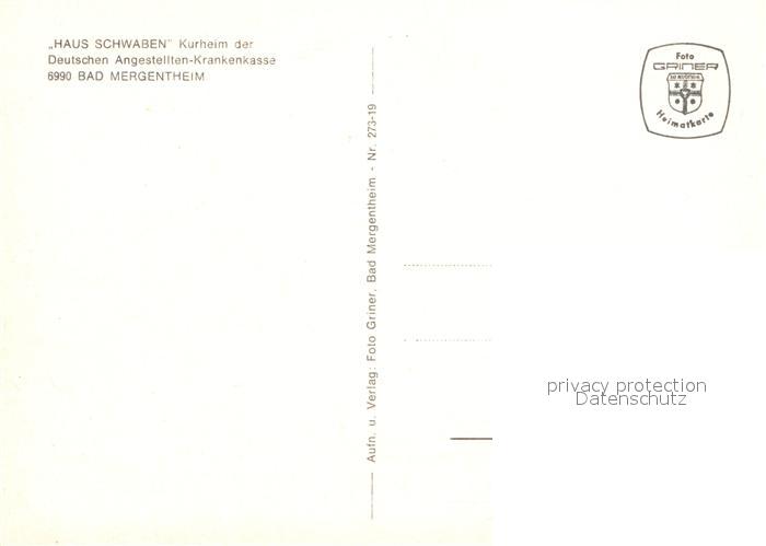 73008337 Bad Mergentheim Haus der Schwaben Kurheim der DAK postalisch nicht gelaufen Erhaltung siehe scans [WerneD78] KatCode: 11110008128007