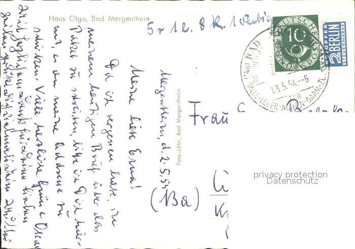 72100266 alte Postkarte Bad Mergentheim Haus Olga postalisch gelaufen KatCode: 11110008128007