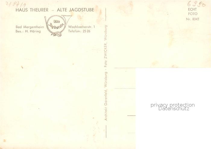 73857876 Bad Mergentheim Haus Theurer Alte Jagdstube postalisch nicht gelaufen Erhaltung siehe scans [FriedD77] KatCode: 11110008128007
